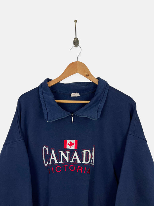 90's Victoria Canada Made Embroidered Vintage Collared Sweatshirt Size M