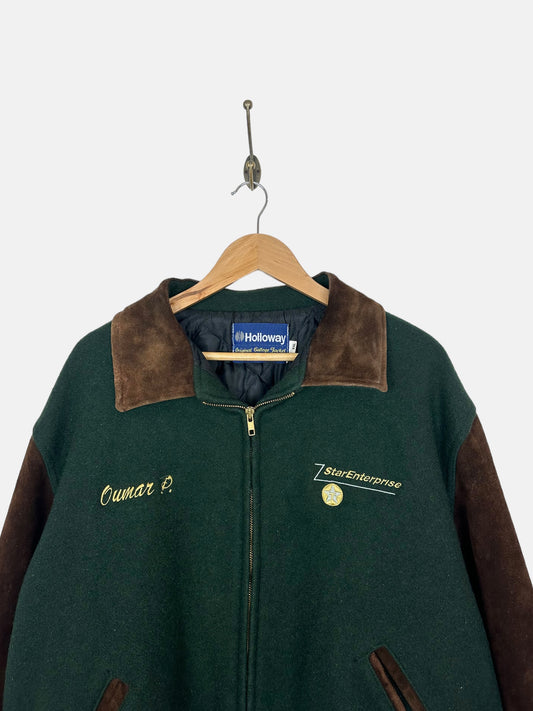 90's USA Made Embroidered Vintage Suede Varisty Jacket Size XL