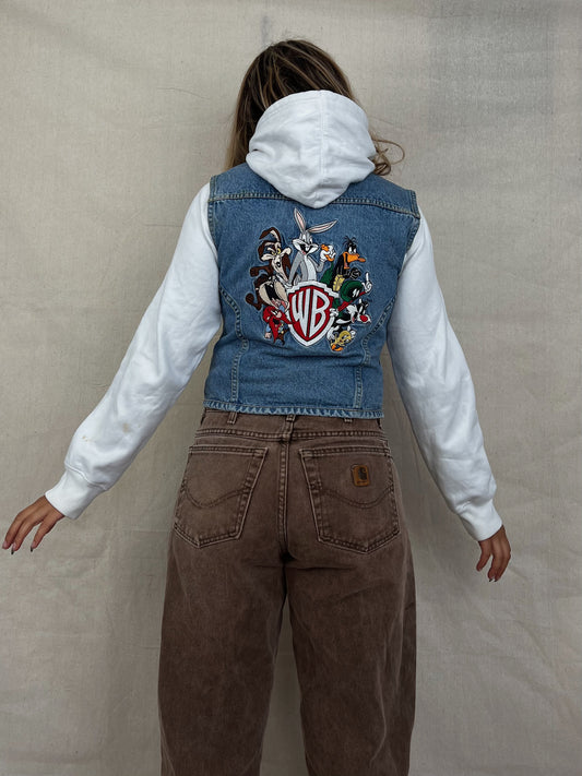 90's Warner Bro's Looney Tunes Embroidered Vintage Denim Jacket Size 8