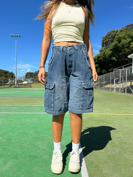 90's Vintage Denim Cargo Jean Shorts Size 28"
