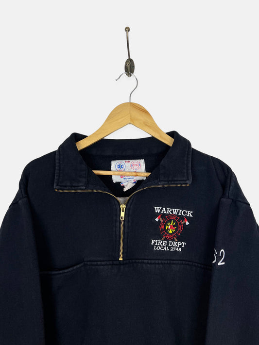 90's Warwick Fire Dpt. USA Made Embroidered Vintage Quarterzip Sweatshirt Size M-L