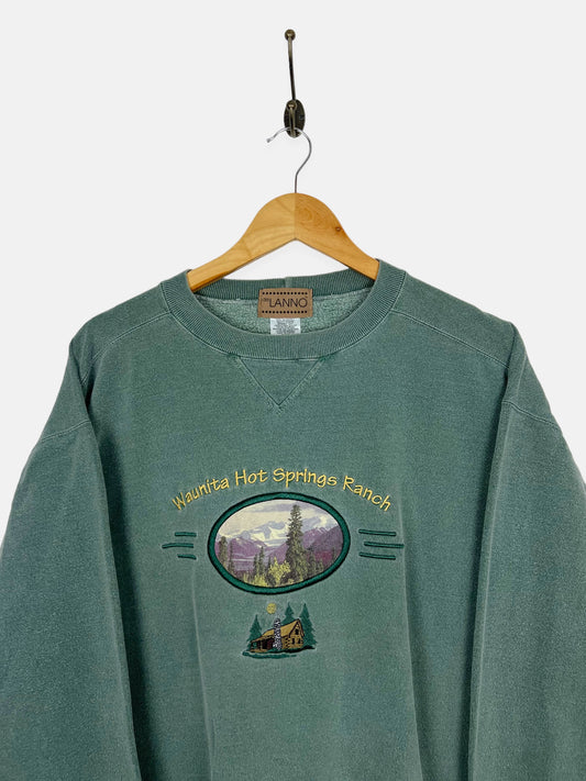 90's Waunita Hot Springs Ranch Canada Made Embroidered Vintage Sweatshirt Size L