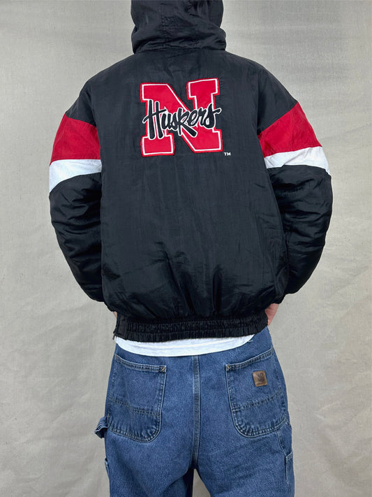 90's Nebraska Huskers Embroidered Vintage Puffer Jacket with Hood Size L-XL