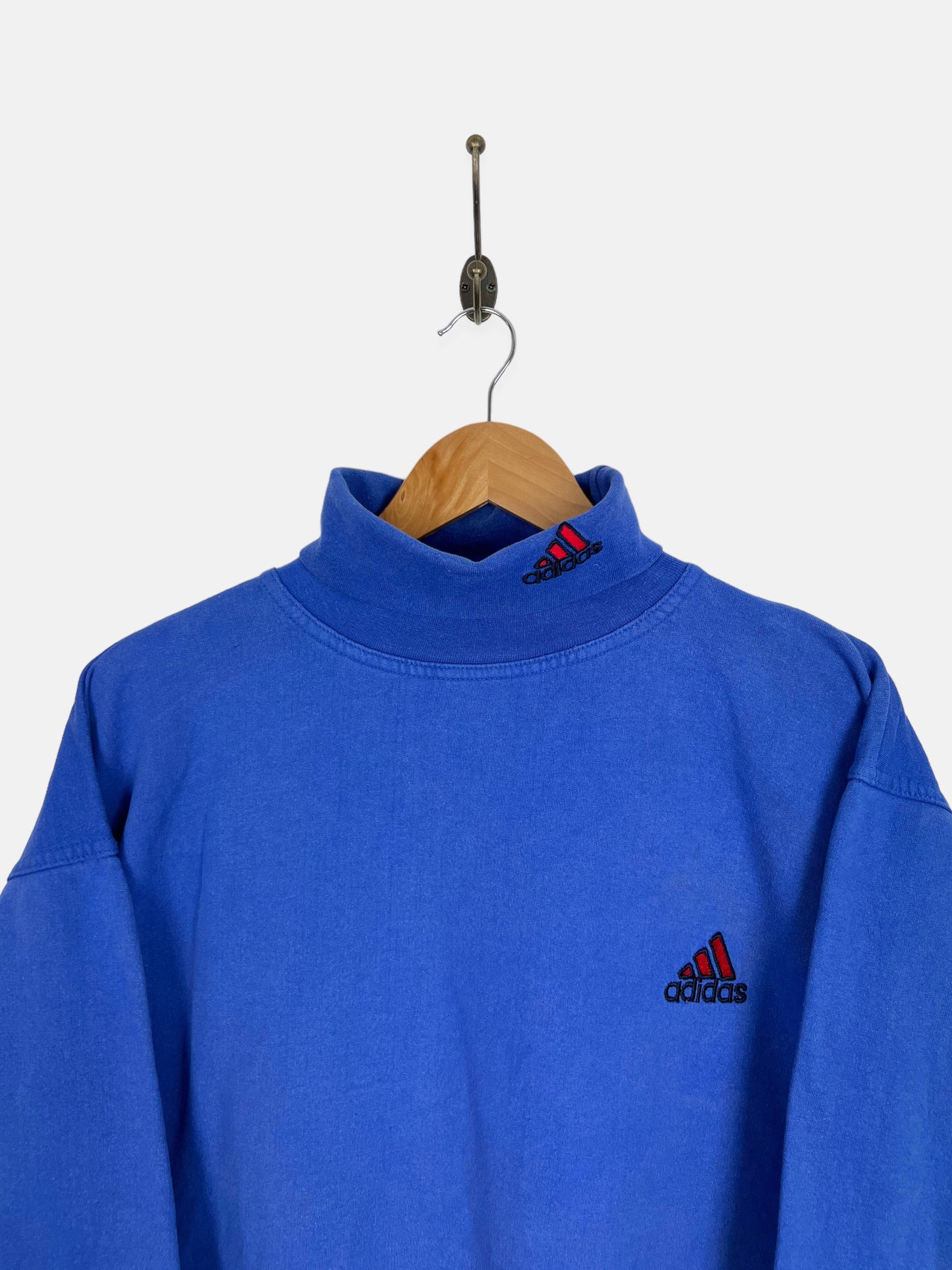 90's Adidas Embroidered Vintage Turtleneck Lightweight Sweatshirt Size L. A unique vintage Adidas Sweatshirt. Mens Size L. Womens Size 16 In Blue. Embroidered. The condition of this item is 8/10