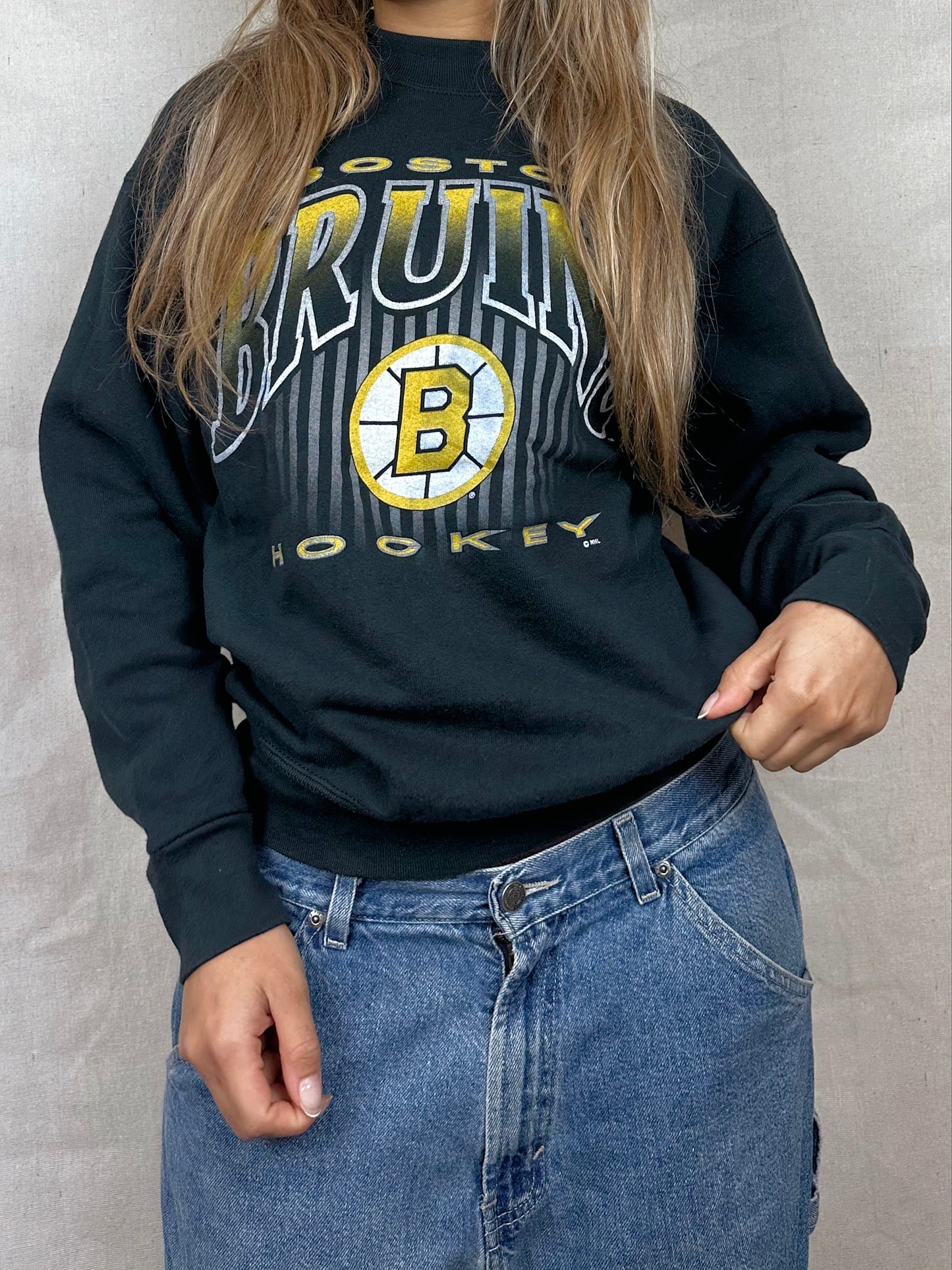 90's Boston Bruins NHL USA Made Vintage Sweatshirt Size 8. A unique vintage Pro Sports Sweatshirt. . Womens Size 8 In Black. USA Made. The condition of this item is 9/10