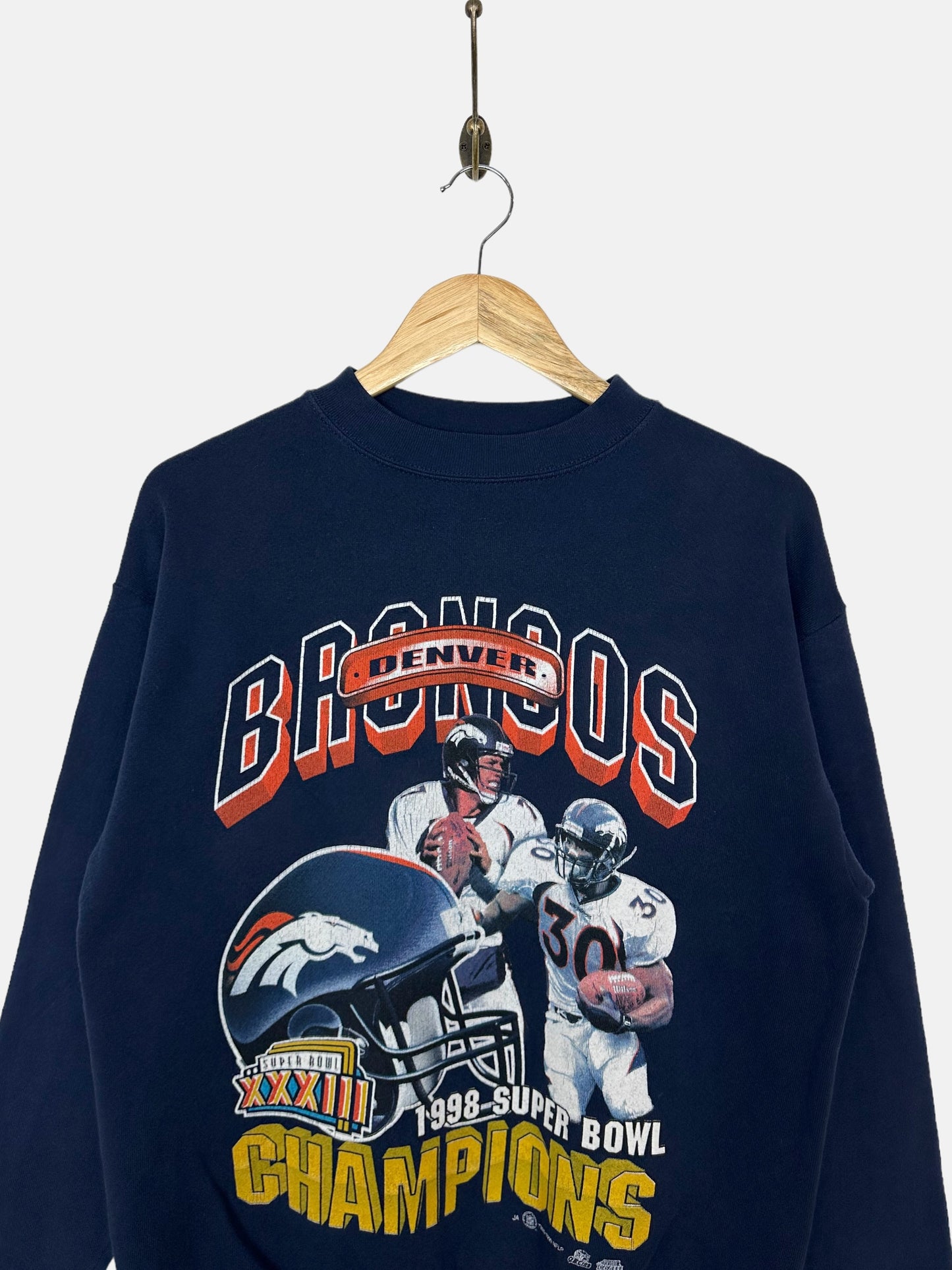 90's Denver Broncos NFL Vintage Sweatshirt Size 8-10. A unique vintage Pro Sports Sweatshirt. . Womens Size 8-10 In Navy. . The condition of this item is 9/10