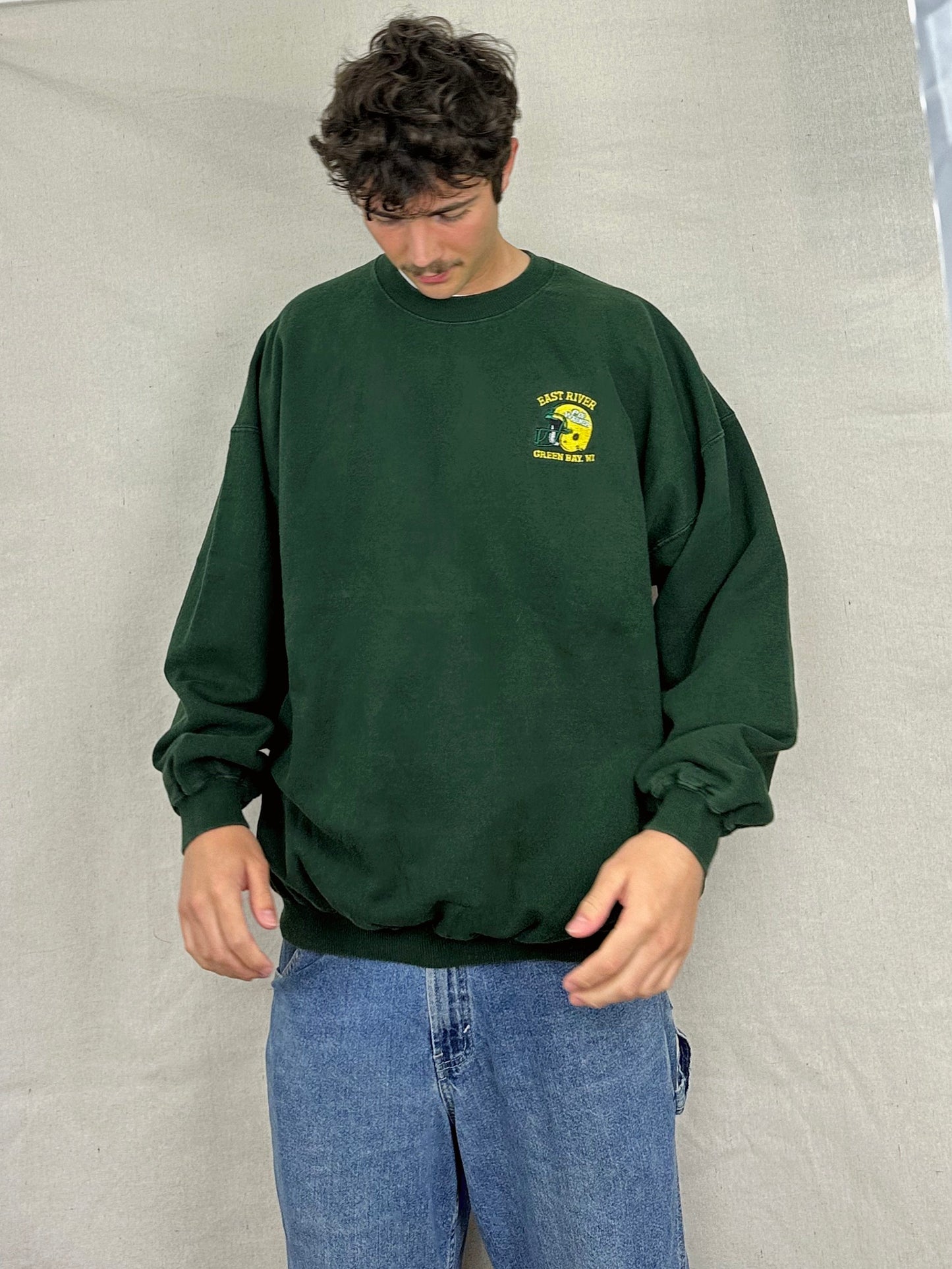 90's East River Green Bay Wisconsin Embroidered Vintage Sweatshirt Size 2XL