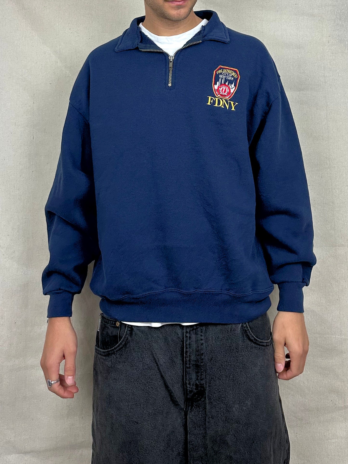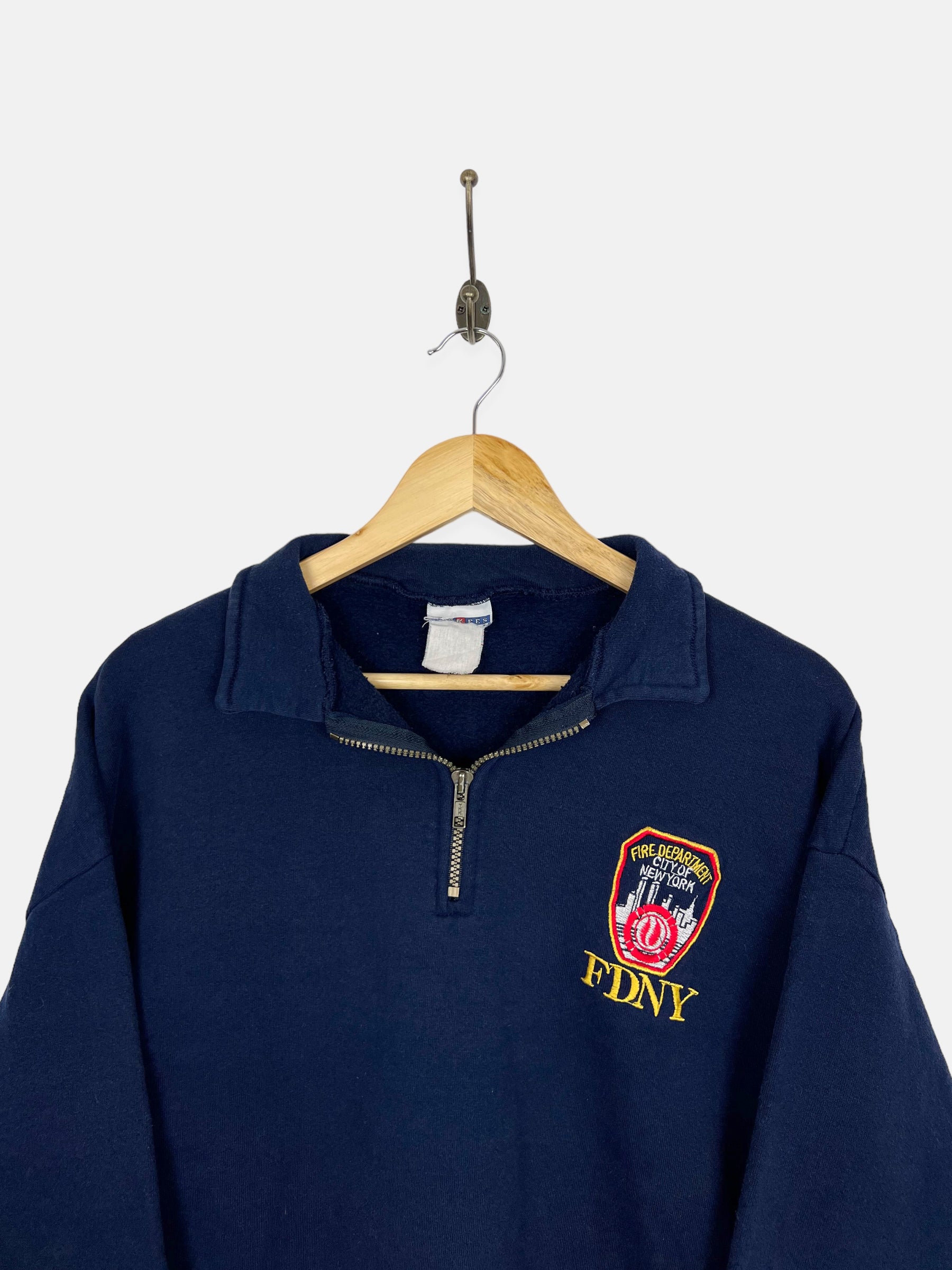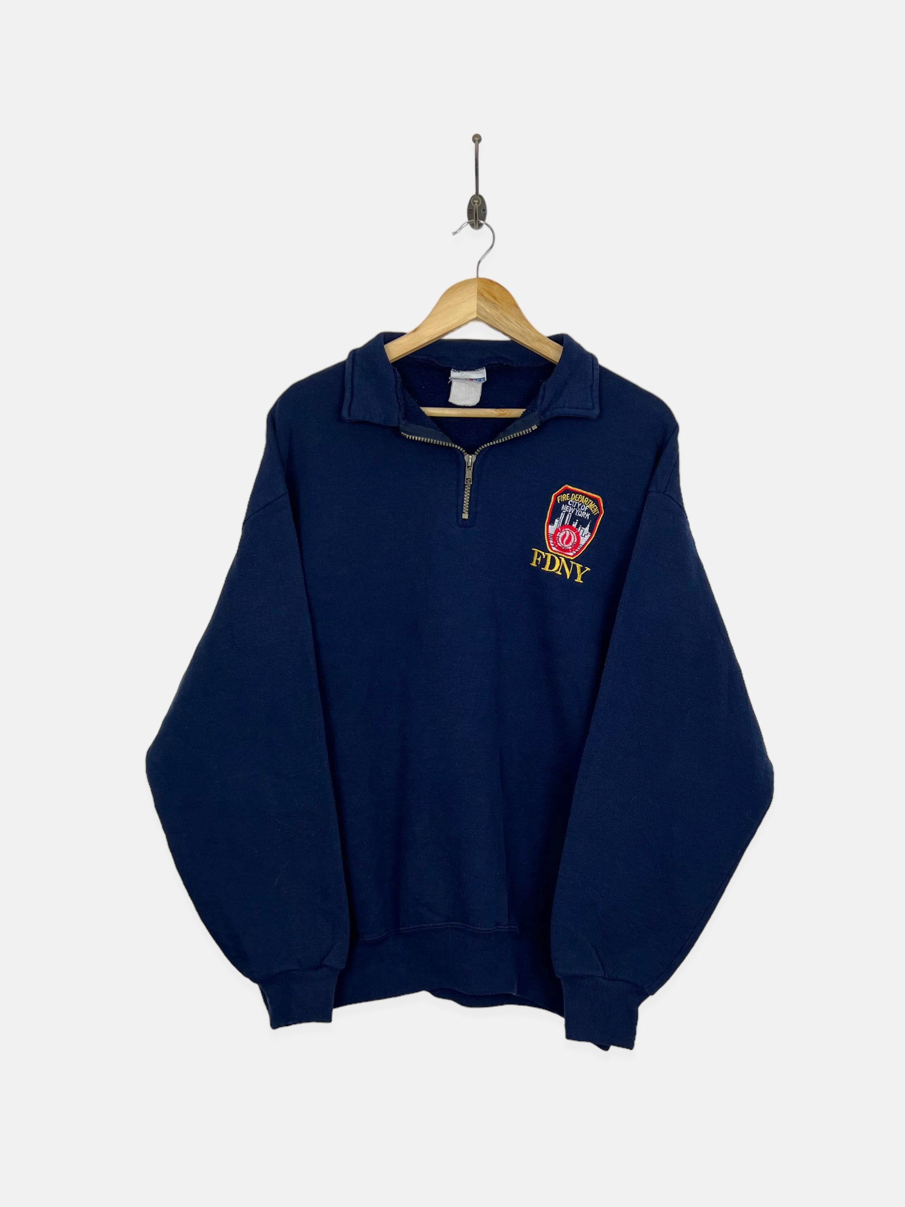 90's FDNY Embroidered Vintage Quarterzip Sweatshirt Size L