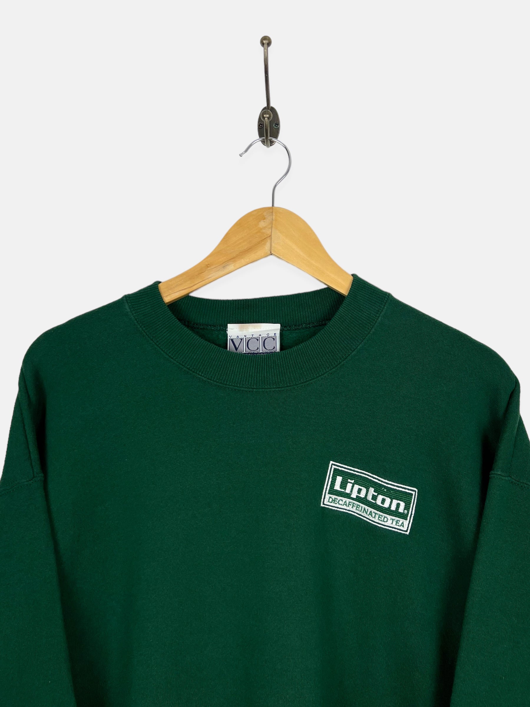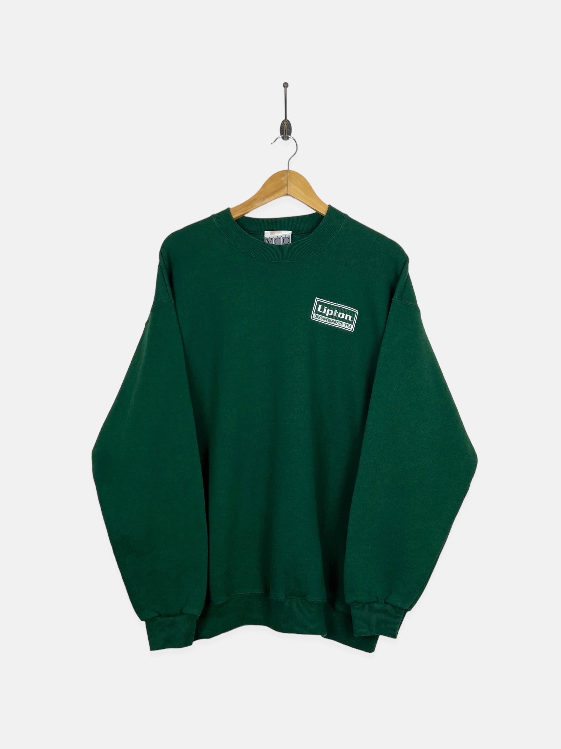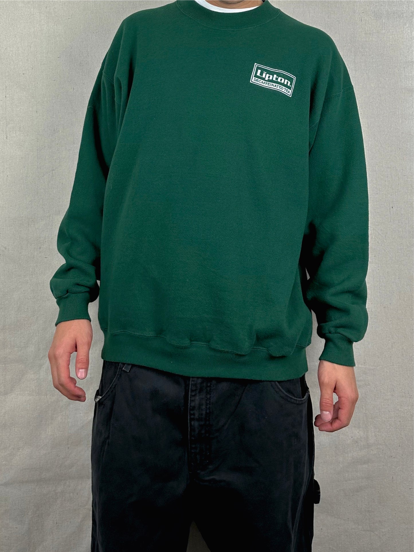 90's Lipton Decaffeinated Tea USA Made Embroidered Vintage Sweatshirt Size XL