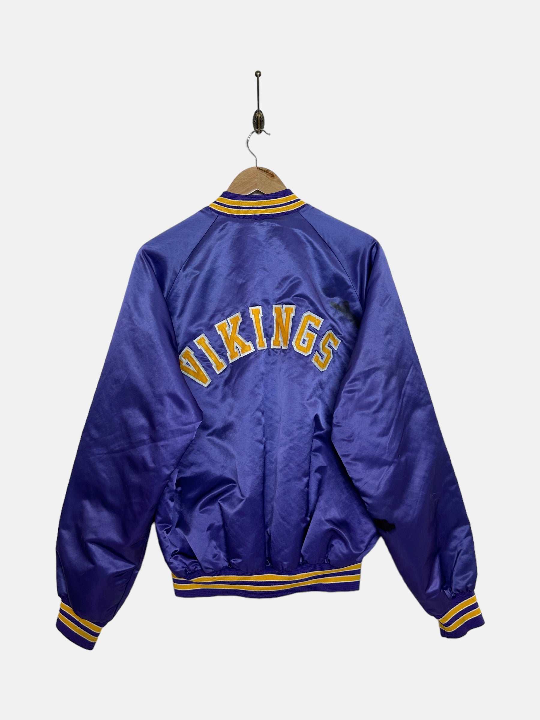 90's Vikings Embroidered Vintage Satin Bomber Jacket Size M